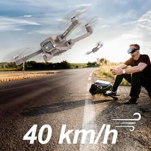 Drone Moteur Sans Brosse avec 2 Caméras 40KM/h MAX Résistance au Vent Classe 4 5GHz WIFI FPV Drones avec Caméra HD Quadcopter RC pour Adultes Débutants 2 Batteries 30 Minutes de Vol idea16 UAV