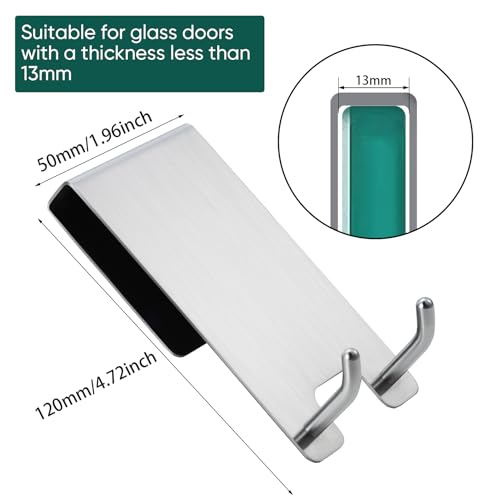 Kegii 2 Pièces Crochet Douche, Crochet Mural Cabine de Douche, Crochet Porte Serviette sans perçage, Crochets Porte de Bains, adapter 6-12 mm d’épaisseur verre, Acier inoxydable brossé