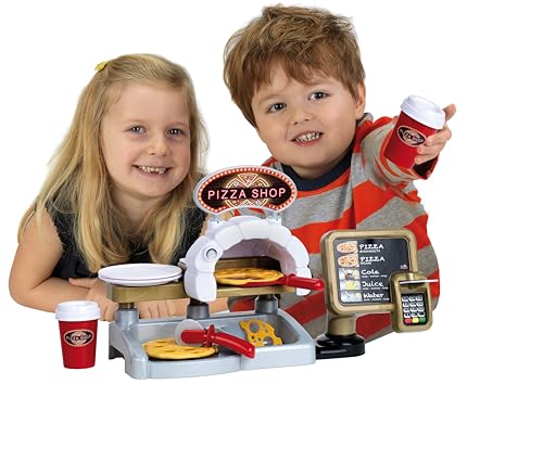 Ce magnifique stand à pizzas comporte: – un écran de commande tactile avec touches sonores – un terminal de paiement avec une fonction sonore déclenchée au moment de l’insertion de la carte bancaire – Une partie dédiée à la préparation des pizzas avec four, bac à ingrédients et présentoir. Ce stand à pizzas est livré avec de nombreux accessoires: – Une pelle à pizza – Une roulette à pizza – deux assiettes – deux gobelets avec couvercles – deux pizzas réversibles (en 3 parties chacune) – six tranches de fromage – Une carte bancaire dimensions du produit monté: 37 x 14, 5 x 23, 5 cm.